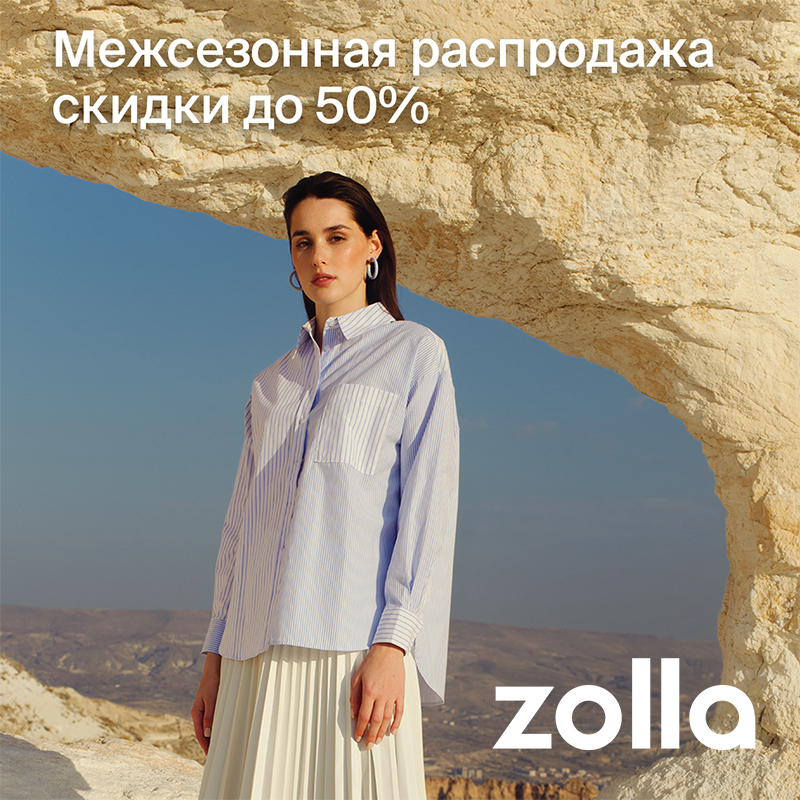 Встречайте весну со скидками до 50%! Романтичные платья и комфортный трикотаж, стильная верхняя одежда и яркие аксессуары. Лучшие модели новой коллекции уже ждут вас в сети магазинов zolla. Успейте преобразить свой весенний гардероб с максимальной выгодой. Акция действует на выборочный ассортимент одежды. В акции участвуют все магазины сети, за исключением магазинов формата дисконт. Подробную информацию об условиях акции, размерах скидок, а также перечне товаров, участвующих в акции, уточняйте у продавцов-консультантов. Организатор оставляет за собой право изменить условия и сроки акции. Предложение действует, пока товар есть в наличии. Количество товара ограничено.