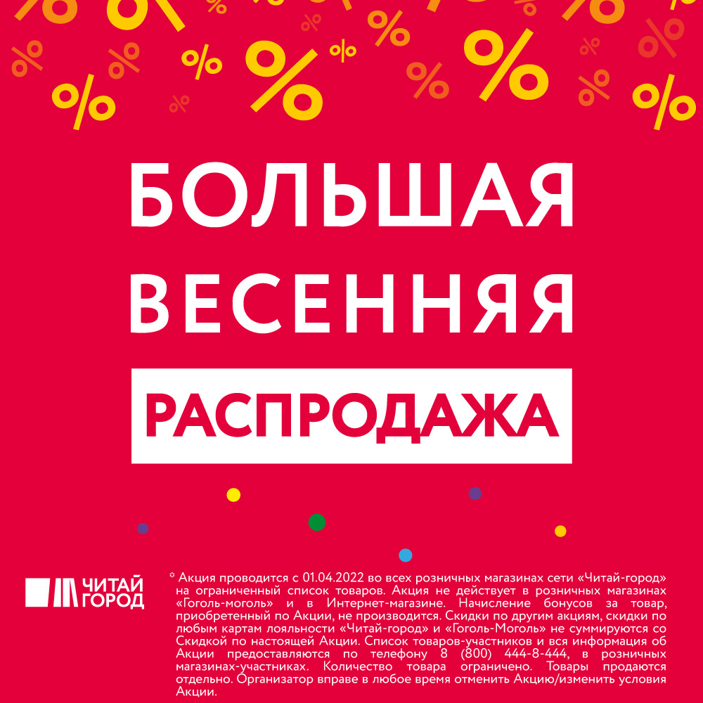 Сердце бьётся чаще, город замирает, а уровень счастья поднимается до небес, когда начинается Большая весенняя распродажа! В это волшебное время действуют скидки и специальные цены на книги, канцтовары, сувениры, товары для хобби и многое другое. Отличная возможность купить то, о чём давно мечтали. Ждём вас в наших магазинах сети!