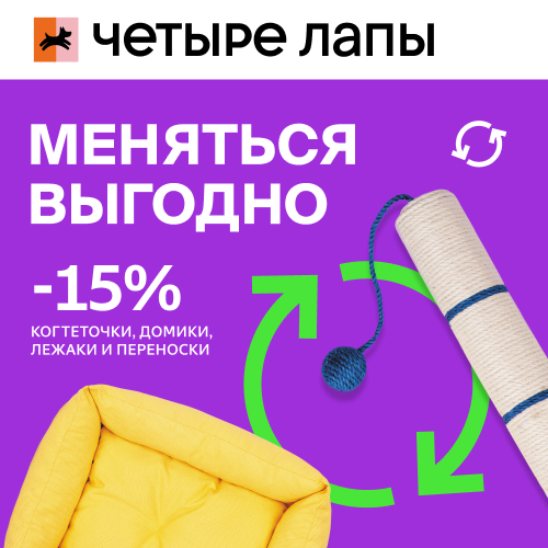 Выгодный trade-in на лежаки, переноски, лежаки и домики для питомцев в зоомагазине Четыре Лапы.