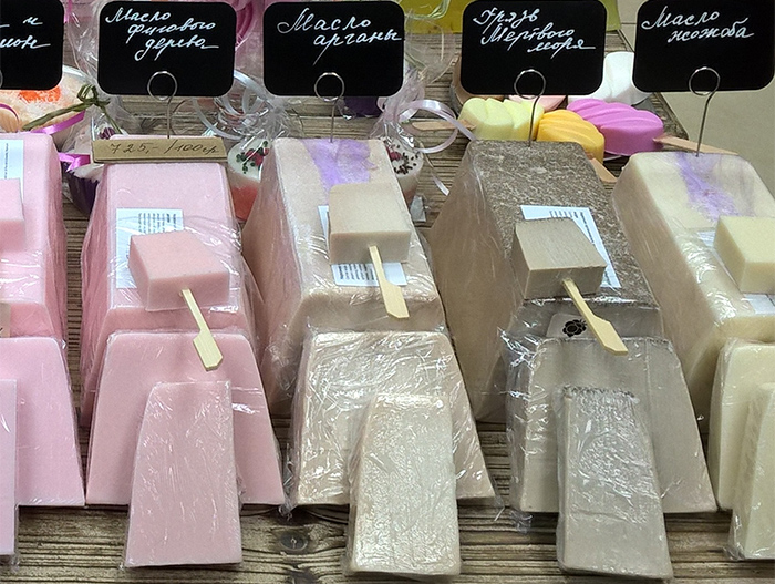 Кусочки прозрачного и матового мыла (мыло в брусках на разрез)