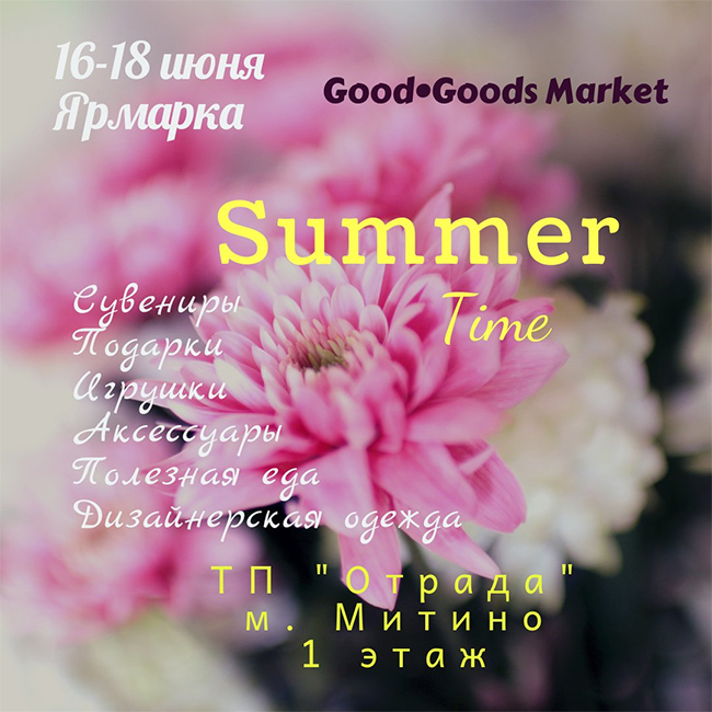 16-18 июня марта приглашаем вас посетить Летнюю Дизайн-Ярмарку, которая будет проходить в ресторанной зоне Торгового Парка "Отрада". Авторские украшения, предметы интерьера, эко продукция, текстиль ручной работы, детские товары, а также одежда от российских дизайнеров и многое другое!