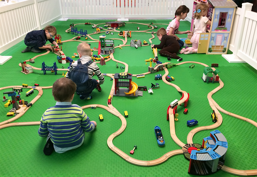 Одна из них: игровая площадка "Ромашково" - это более сорока метров железных дорог, сотня паровозиков на любой вкус и цвет, полиция, пожарная команда, карета скорой помощи, конюшня, депо, карусель и много-много грузов, вагончиков, а также других классных элементов!
