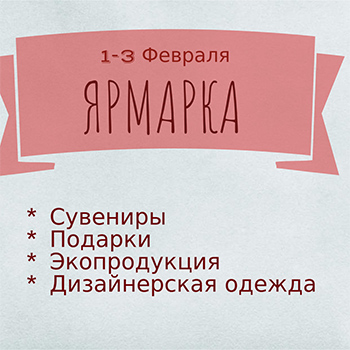 Приглашаем Вас посетить ярмарку интересных вещей и подарков, которая будет проходить в детской галерее Торгового парка. На ярмарке Вы сможете приобрести необычные вещи и подарки для своих друзей и близких, а также одежду от Российских дизайнеров. Ждем Вас на нашей ярмарке!