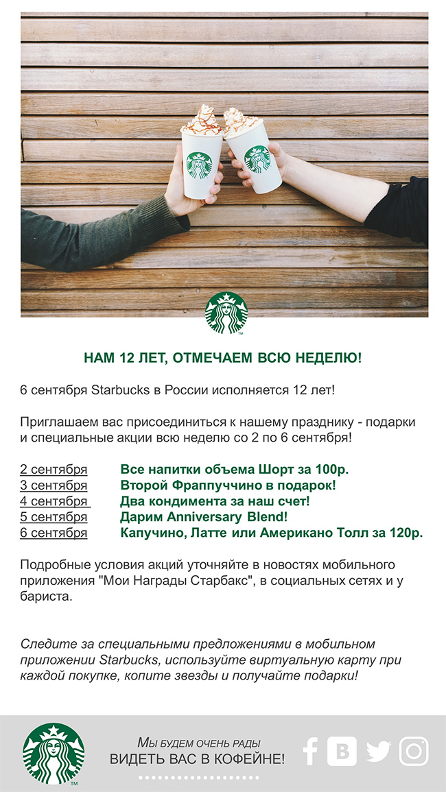6 сентября у Starbucks день рождения – 12 лет в России!