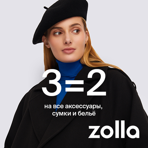 Уютные шарфы, стильные головные уборы и другие аксессуары по самым приятным ценам уже ждут вас в zolla. Успейте воспользоваться специальным предложением и получите каждую третью вещь бесплатно. Порадуйте себя и своих любимых стильными подарками! Акция действует на весь ассортимент аксессуаров, включая товары со скидкой. При покупке 3-х и более акционных вещей предоставляется скидка на весь акционный товар в чеке. Скидка предоставляется в размере наименьшей стоимости одной акционной вещи. При покупке 3-х акционных вещей с одинаковой стоимостью скидка предоставляется в размере стоимости одной вещи. Подробную информацию об условиях акции, размере скидок, а также перечне товара, участвующего в акции, уточняйте у продавцов-консультантов. Организатор оставляет за собой право изменить условия и сроки акции. Предложение действует, пока товар есть в наличии. Количество товара ограничено. Реклама. Рекламодатель ООО «Фактор». www.zolla.com