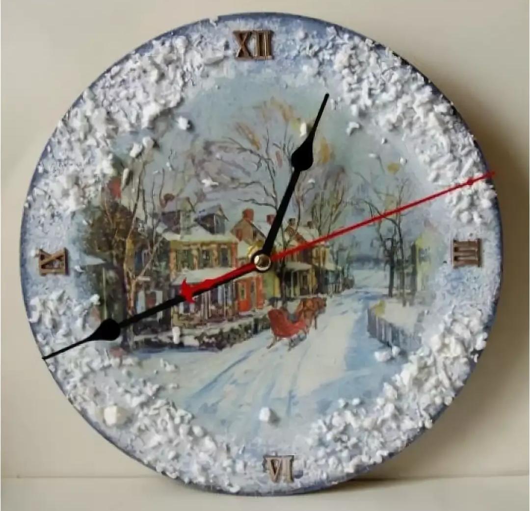 Мастер-класс "Новогодние часы" роспись и декупаж