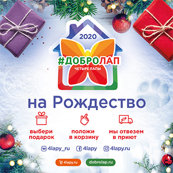 Компания «Четыре Лапы» приглашает принять участие в благотворительной акции «Добролап» всех, кто хочет помочь питомцам из приютов.