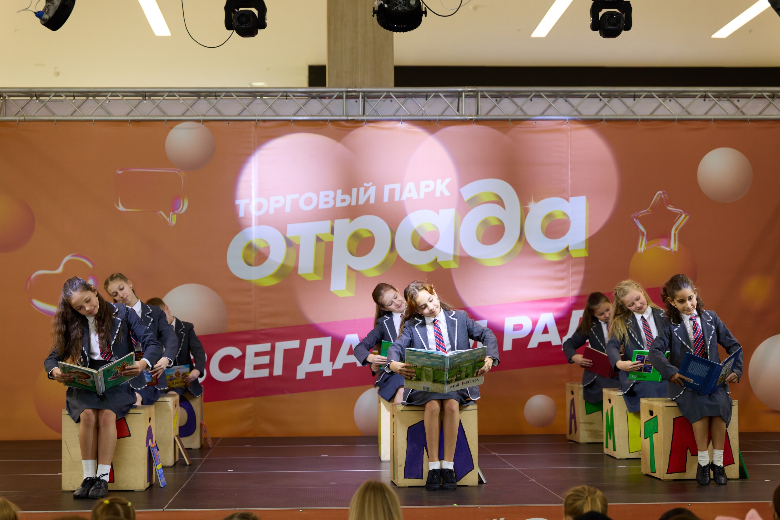 27 мая 2019 Фотоотчет с концерта 26 мая 1 марта 2020 Фотоотчет с Фестиваля «Отрада зажигает звезды» 1 марта 2020 16 февраля 2020 Фотоотчет с Фестиваля «Отрада зажигает звезды» 16 февраля 2020 11 декабря Фотоотчет с декабрьских мероприятий 30 мая 2021 30 мая ФИНАЛ "Отрада зажигает звезды!" 23 мая 2021 Фотоотчет со второго полуфинала фестиваля "Отрада зажигает звезды!" 5 мая 2021 Фотоотчет с первого полуфинала фестиваля "Отрада зажигает звезды!" 14 февраля 14 февраля Романтический концерт ко Дню всех Влюбленных 13 марта 2019 Фотоотчет с нашей веселой масленицы! 9 февраля 2020 Фотоотчет с открытия конкурса "Отрада зажигает звезды" 9 февраля 2020 Фотоотчет с фестиваля «Отрада зажигает звезды» от 9-го февраля 2020 3 февраля 2020 Открытие фестиваля «ОТРАДА ЗАЖИГАЕТ ЗВЕЗДЫ» 29 октября 29 октября: Хэллоуин в Отраде 24 сентября: фотоотчет с книжного фестиваля! 20 августа: фотоотчет с Фестиваля дворовых игр Фотоотчет 13.08: гонка на беговелах и самокатах! 28 МАЯ: ФИНАЛ "ОТРАДА ЗАЖИГАЕТ ЗВЕЗДЫ 2023" 21 МАЯ: ВТОРОЙ ПОЛУФИНАЛ "ОТРАДА ЗАЖИГАЕТ ЗВЕЗДЫ 2023!" 14 мая: Первый этап отбора в финал "Отрада зажигает звезды 2023" 2 и 9 апреля: фотоотчет с мастер-классов «Стена с цветными пончиками» и «Арт Бутерброды» 5 марта: спектакль «Малышарики» 25 декабря: фотоотчет с Новогодних выходных 13 ноября: Фотоотчет с благотворительной ярмарки "Доброкотики" 30 октября: фотоотчет с командой Щенячий патруль 23 октября: Спортивный праздник с Дракошей Тошей и «Командой Матч» 16 октября: фотоотчет с Игрового шоу «Три Кота: Миу - Миу День!» 2 октября: фотоотчет с Фиксики супер-шоу 25 сентября: Книжная ярмарка и спектакль "Незнайка и его друзья" 18 сентября: фотоотчет с Ярмарки Образования 4 сентября: Фотоотчет с ПЕРВОКЛАССНОГО ПРАЗДНИКА! 27 и 28 августа: фотоотчет с Акции "Одень первоклассно!" 21 августа: фотоотчет с «Мы играем Ералаш!» 17 июля: фотоотчет с Бразильского фестиваля! 10 июля: фотоотчет с Китайского фестиваля 26 июня: Фотоотчет с Парада и мастер-класса воздушных змеев 29 мая: фотоотчет с финала "Отрада зажигает звезды 2022!" 22 мая: фотоотчет со второго отборочного тура "Отрада зажигает звезды 2022!" 15 мая: фотоотчет с первого отборочного тура "Отрада зажигает звезды 2022!" 24 апреля: фотоотчет с Весеннего концерта и Бумажной дискотеки 27 марта: Krio & Tesla show "Весна зажигай!" 20.3 20 марта: Фестиваль мартовских котов и театрально-световое представление Фотоотчет 13.02 с праздничной программы "Парящие сердца" и мастер-класса "Большое сердце" 8.3 Фотоотчет 8 марта "Bubble & Magic Fantasy show" 30.11: FASHION SHOW в Торговом парке "ОТРАДА" 01.06 1 июня: Отрада зажигает звезды! 20.10 20 октября: фотоотчет с танцевального фестиваля 06.10 6 октября: фотоотчет с фестиваля "МОЙ ЧУДЕСНЫЙ ЦИРК" 25.08 25 августа: Розыгрыш призов "Стартуем первоклассно 2024" 28 июля Фотоотчет 28 июля: Ярмарка мастеров 14 июля: фестиваль красок Холи 21 апреля 21 апреля: Итоги финального дня фестиваля «Отрада зажигает звезды» 14 апреля 14 апреля: "Отрада зажигает звезды" - второй отборочный тур 7 апреля 7 апреля: "Отрада зажигает звезды" - первый отборочный тур 13 марта 13 марта Масленица в Торговом парке "Отрада" 23 февраля Праздничный концерт 23 февраля