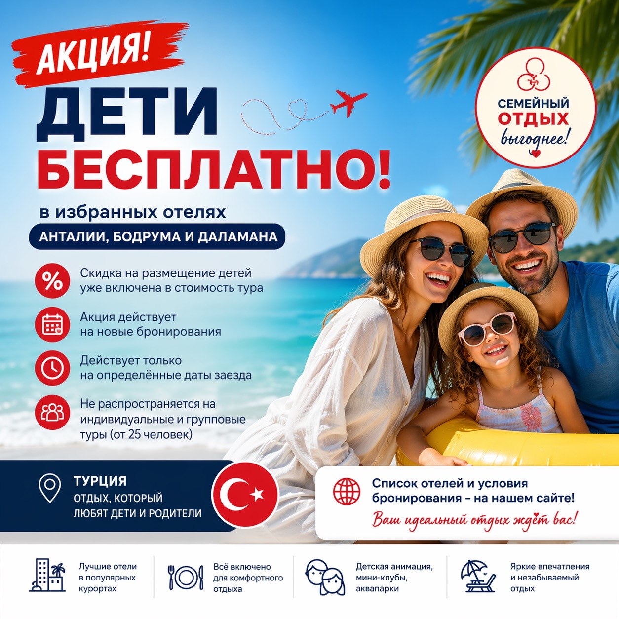 Дети бесплатно в Турции — выгодные туры 2026 для семейного отдыха